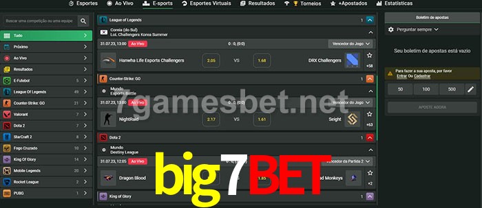 O big7bet oferece uma grande seleção de opções de apostas em e-sports com probabilidades competitivas